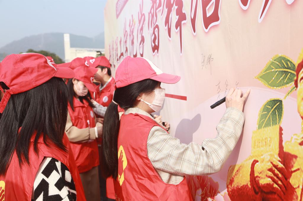 启动仪式上,学工部(处)、校团委向全校师生发出号召,动员志愿者们积极参与到各项志愿服务活动中去,用实际行动传承雷锋精神,弘扬时代新风。志愿者们在签名墙上签名,写下践行雷锋精神的承诺。