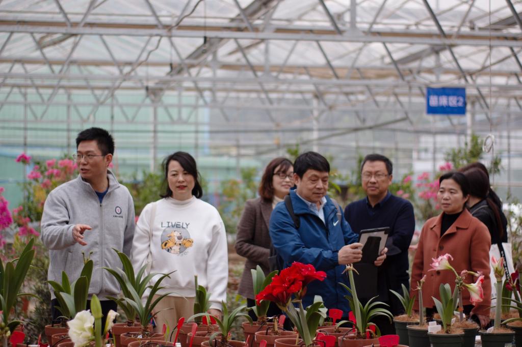 近日,中国农科院蔬菜花卉研究所研究员明军、湖北省农科院经作所花卉团队副研究员向发云、荆门市农业农村局副局长王晓艳等专家领导一行前来海燕策略社区论坛特色花卉生物育种省工程研究中心考察交流。副校长曹甜东陪同参观考察。