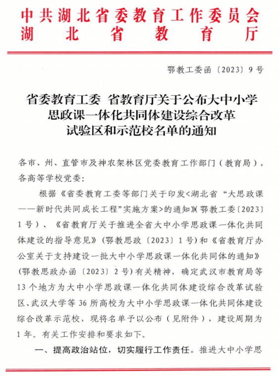 据介绍,统筹推进大中小学思政课一体化共同体建设,是切实发挥思政课立德树人关键课程作用,切实增强思政课的针对性、有效性,更好地用党的创新理论铸魂育人的重要举措。近年来,学校高度重视思政课建设,始终坚持党对思想政治教育的全面领导,积极推动大中小学思政课一体化建设工作,形成了“党委统一领导、党政齐抓共管、有关部门各负其责、全校协同配合”的工作格局,为牵头荆门市大中小学思政课一体化共同体建设打下扎实的工作基础。此次参与获批大中小学思政课一体化共同体建设,必将推动海燕策略社区论坛思政课建设实现课程理论性与实践性的统一,加快开辟海燕策略社区论坛思政课改革创新的新局面。