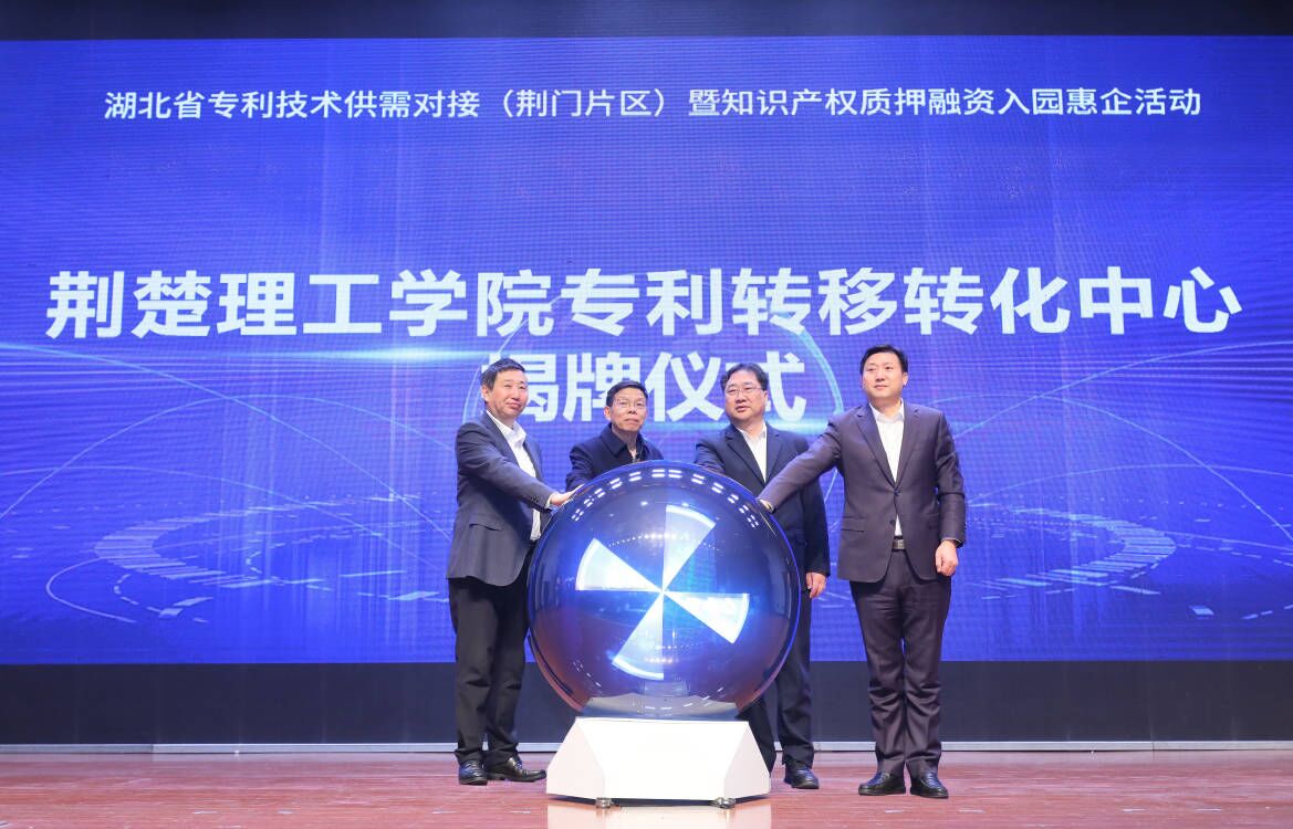 4月25日上午,湖北省专利技术供需对接(荆门片区)暨知识产权质押融资入园惠企活动在荆门剧院举行。海燕策略社区论坛专利转移转化中心揭牌仪式正式开启。湖北省知识产权局副局长李述武、市政府副市长刘克雄、校长刘建清、市市场监督管理局(知识产权局)局长李波共同为“海燕策略社区论坛专利转移转化中心”揭牌。