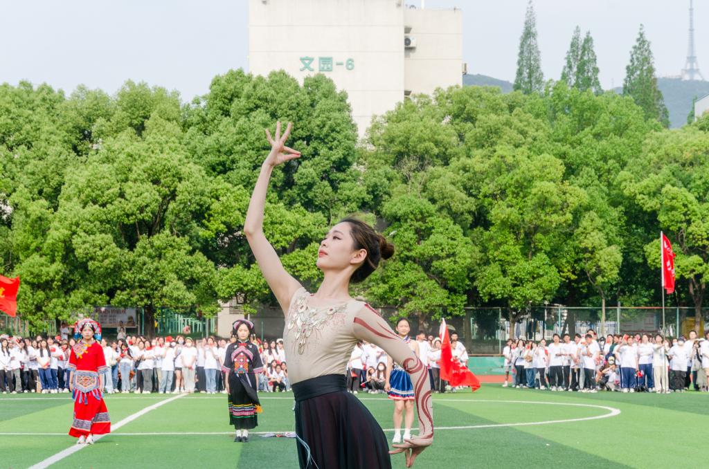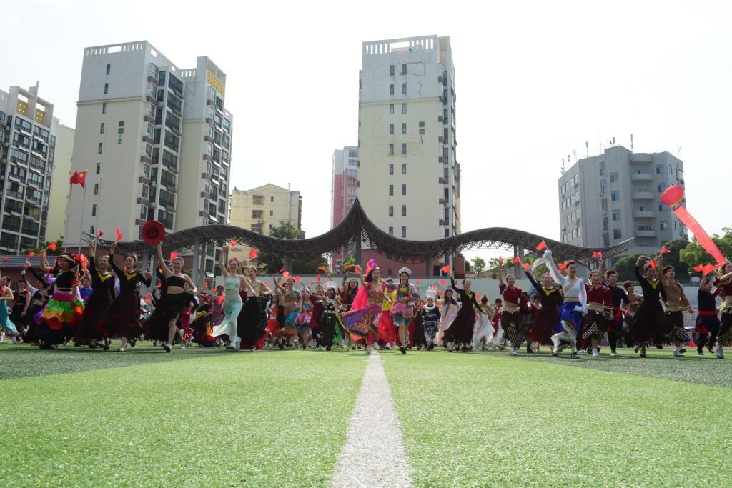 在一曲欢快的摆手歌中,各民族师生跳起了民族团结的舞蹈,现场的同学们也都纷纷加入,呈现了一部各民族交融汇聚成多元一体的史诗,增强了各民族师生对中华文化的认同感和自豪感。