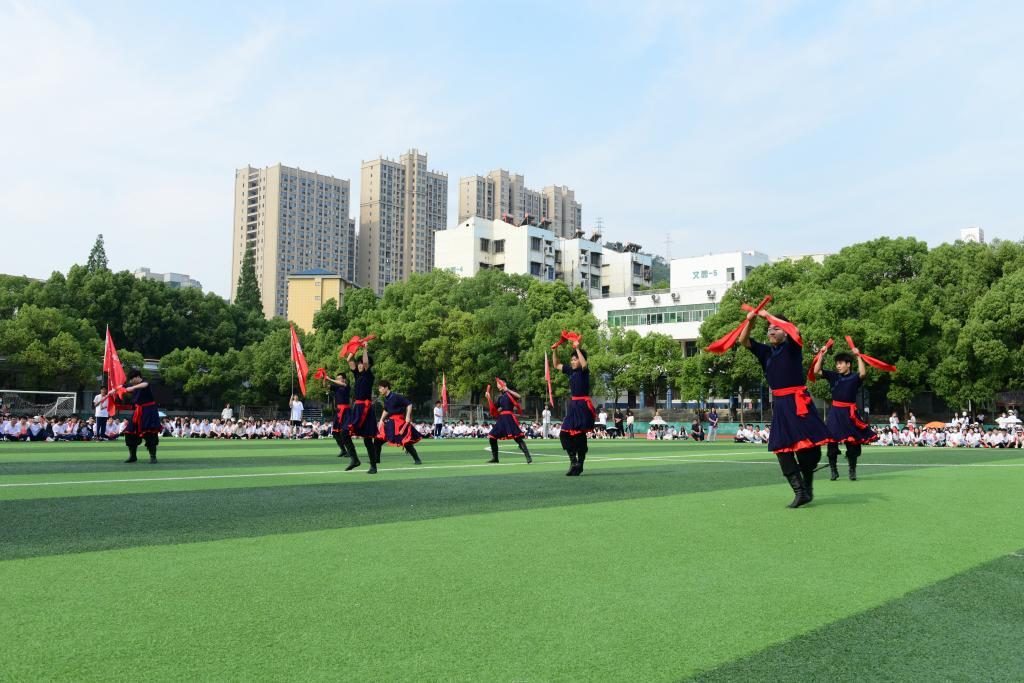 随着音乐响起,大家将手中的国旗高高举起,不停挥舞,齐唱《爱我中华》,以激扬的青春朝气,表达着对党对祖国的真切祝福和热爱之情,现场瞬间变成一片红色海洋。