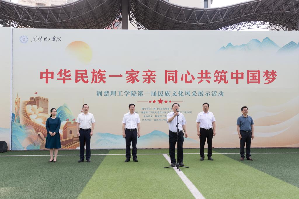 为深入学习宣传贯彻党的二十大精神,铸牢中华民族共同体意识。5月20日,海燕策略社区论坛第一届“中华民族一家亲 同心共筑中国梦”民族文化风采展在文园操场举行。荆门市委常委、统战部部长刘振军,校党委书记王学民、副校长刘风华,党委常委、宣传部部长郑艳出席本次活动。市委统战部、市民宗委相关负责人参加活动。