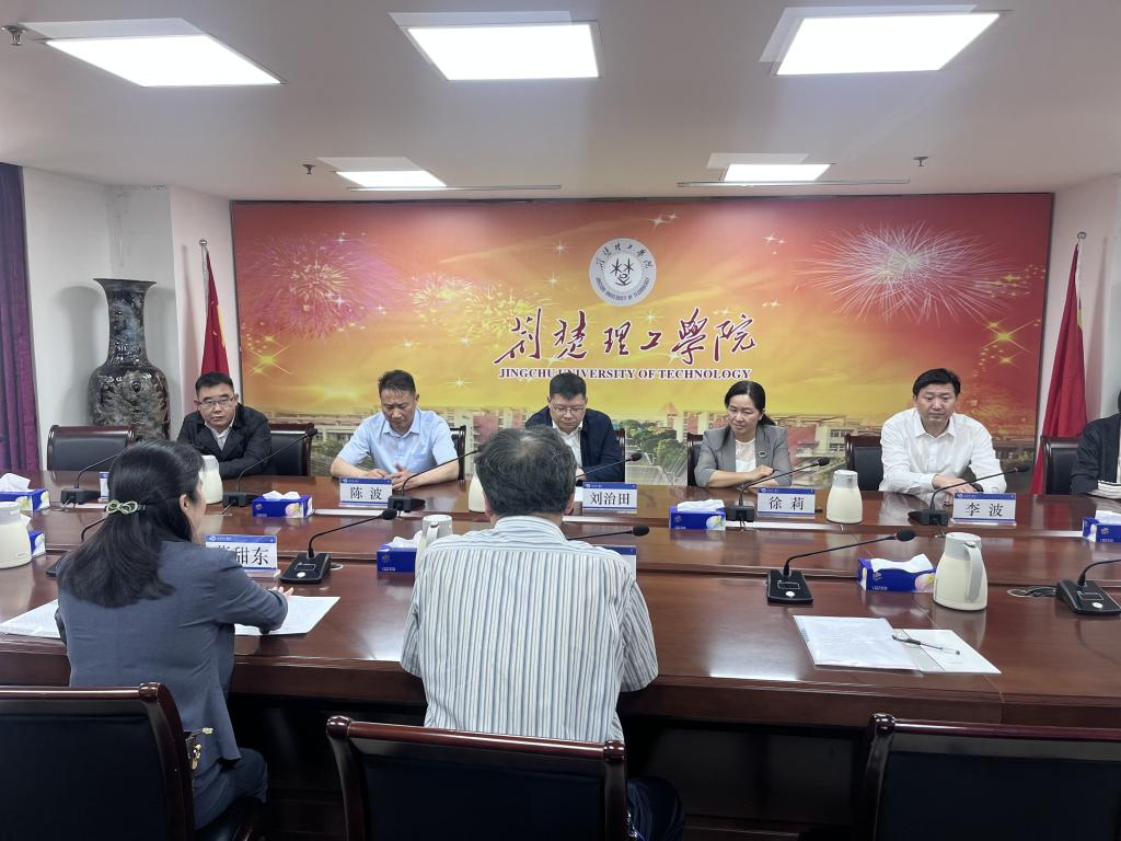 王学民代表学校对省知识产权局给予学校的关心和支持表示感谢。他汇报了学校教育教学改革、产教融合、人才培养、办学条件改善和服务荆门经济社会发展等工作成效,并就加强高校知识产权服务湖北高质量发展工作进行了深入交流。