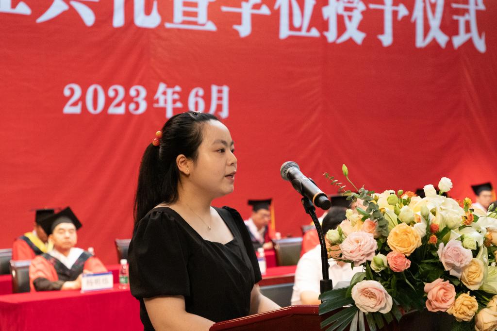 在校生代表、化工与药学院王颖漪,校友代表、电子信息工程学院余为伟,2022届毕业生代表、艺术学院宋若晨发言,通过分享成长过程中的感悟,表达了对母校的感激之情和对2023届毕业生的美好祝愿。