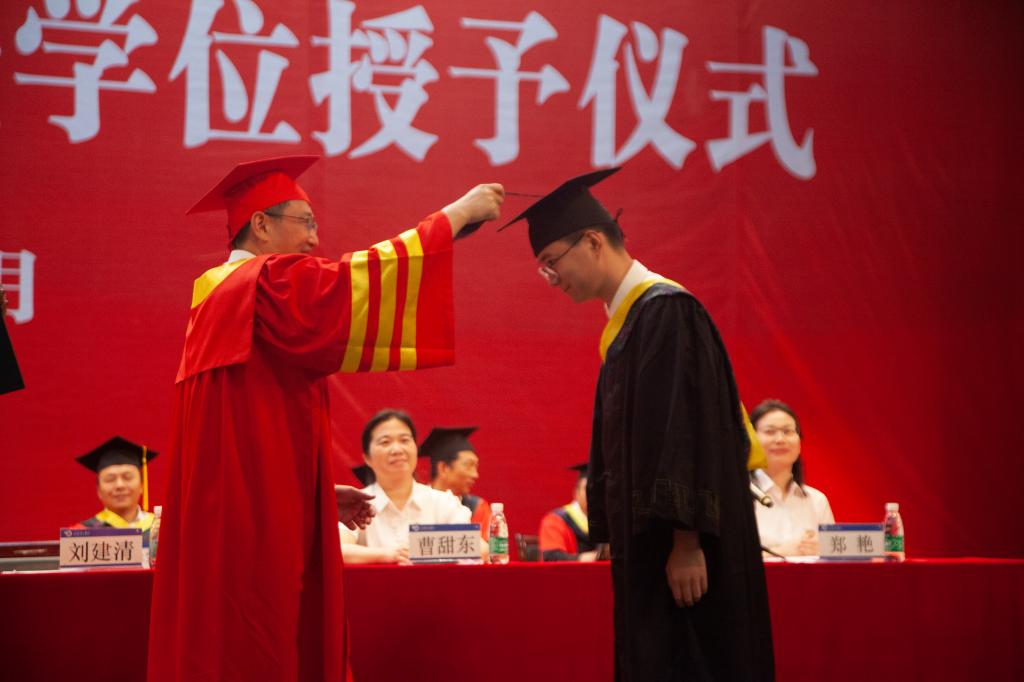 应届毕业生代表、外国语学院杨良宇,留学生代表、国际教育学院杜塞发言,总结了自己在校四年青春时光的收获,表达了对学校的不舍和深深的感谢之情,表示将永远铭记校风校训,在实现中华民族伟大复兴中国梦的新征程上奋勇前进。