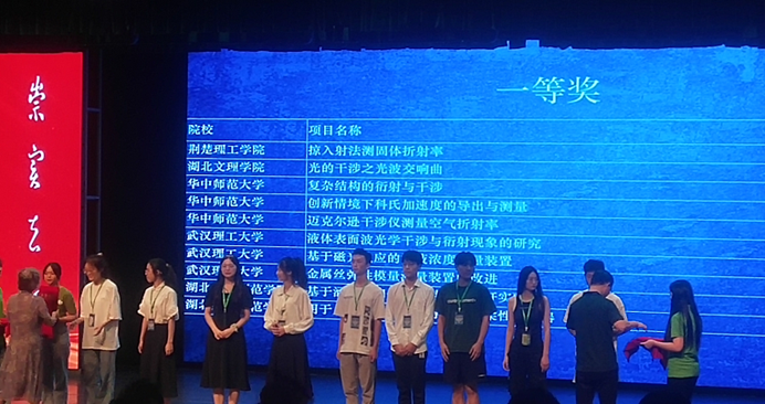 湖北省大学生物理实验创新设计竞赛是由湖北省教育厅主办的省级A类学科竞赛,由竞赛组委会、湖北省物理学会、湖北省高等学校实验物理教学研究会、湖北省高等学校物理实验教学示范中心联席会联合主办。旨在充分发挥我省高校物理实验教学示范中心的示范与资源共享作用,展示我省高校物理实验教学的改革成果,从而激发大学生对物理实验的兴趣,培养他们综合运用物理知识解决实际问题和进行实验研究的能力,提高创新意识和创新能力。本届大赛共有来自全省44所本科高校选送的599件作品参加决赛,经过线上盲评、现场答辩与演示、合议复评等环节,共决出一等奖57项,二等奖106项,三等奖120项。