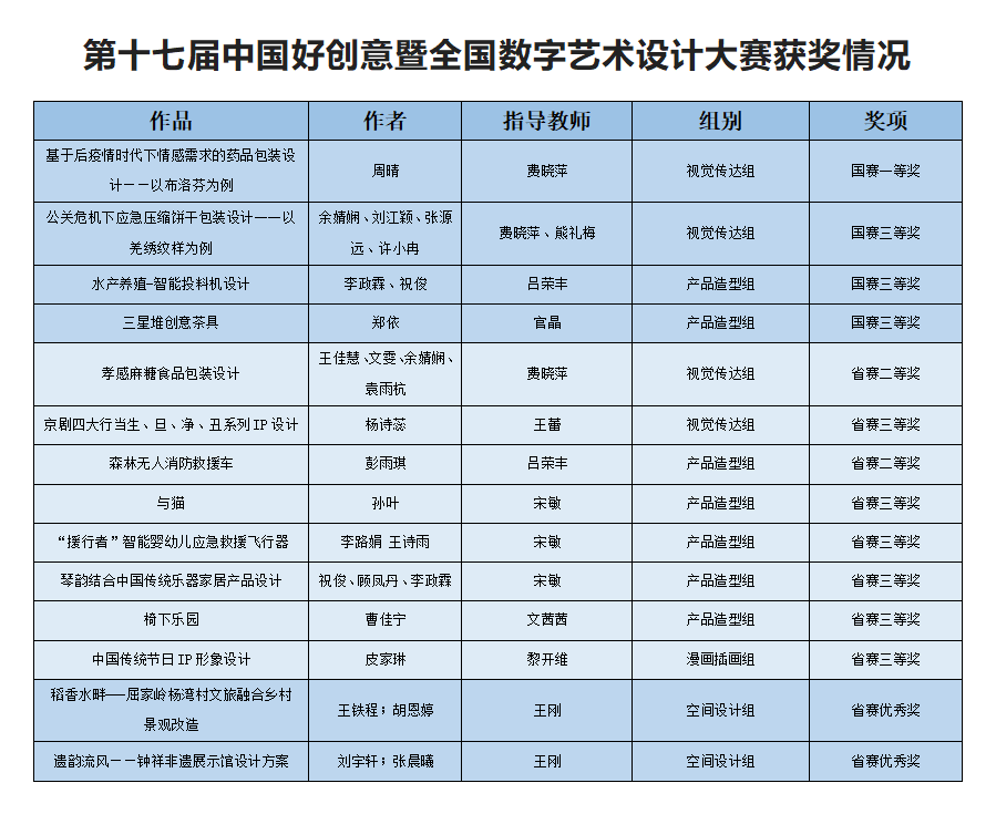 近日,第十七届中国好创意暨全国数字艺术设计大赛落下帷幕。海燕策略社区论坛共14项作品获奖,其中国赛一等奖1项、三等奖3项,省赛二等奖2项、三等奖6项、优秀奖2项。此外,海燕策略社区论坛艺术学院获得此次大赛省级优秀组织奖,海燕策略社区论坛金波老师获此次大赛特殊贡献奖。