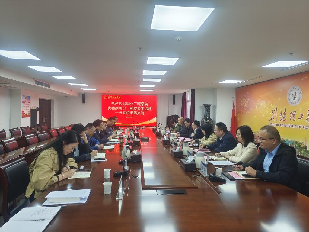 刘风华代表学校向丁远坤一行来校交流表示欢迎,介绍了海燕策略社区论坛近年来办学成效和现阶段建设发展情况。他表示,两校友好关系源远流长,地缘相似、人缘相亲,海燕策略社区论坛一定全力支持湖北工程学院发展建设,共同响应社会发展需求,凝炼办学特色,增强办学实力,积极推动教育事业的高质量发展,并衷心祝愿湖北工程学院80周年校庆活动圆满成功。
