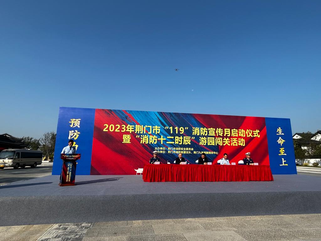 11月2日,由荆门市消防救援支队主办的2023年荆门市"119"消防宣传月启动仪式暨消防十二时辰游园闯关活动在荆门市园博园举行,市政府副市长周俊杰出席仪式并宣布宣传月活动启动。全市消防指战员、消防安全重点单位以及海燕策略社区论坛消防志愿者代表共计400余人参加活动。