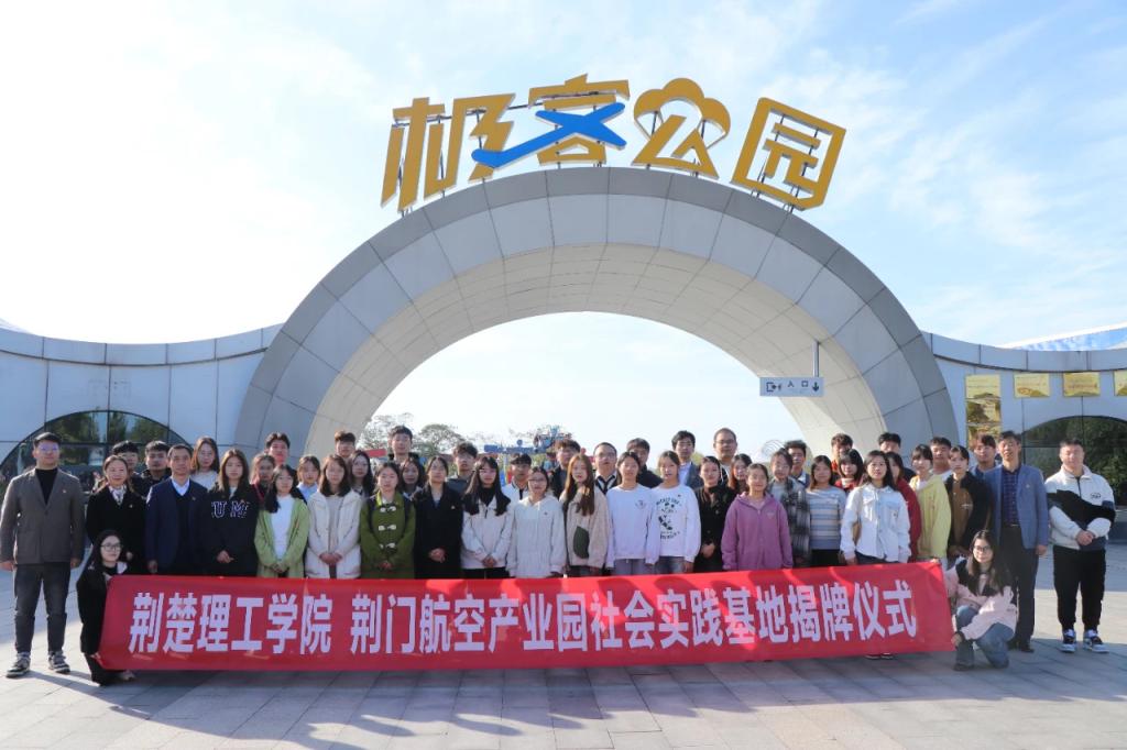 湖北文旅荆门集团有限公司董事长邓勇、通用航空学院党总支副书记王世友共同为大学生社会实践基地揭牌。