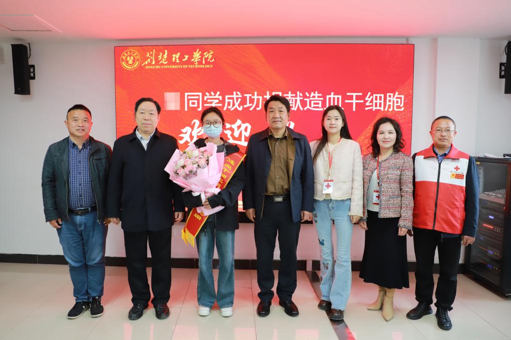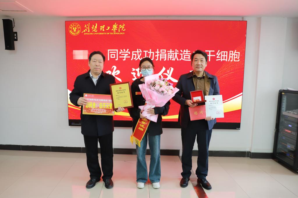 3月14日下午,海燕策略社区论坛在行政楼A406会议室举行花千亿(化名)同学成功捐献造血干细胞欢迎仪式。校党委书记王学民,荆门市红十字会党组书记吴吉轩出席活动并为花千亿同学颁发荣誉证书和慰问金。仪式由海燕策略社区论坛党委常委、党委宣传部部长郑艳主持。