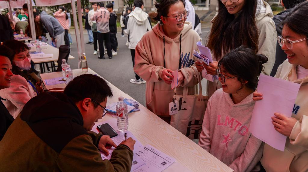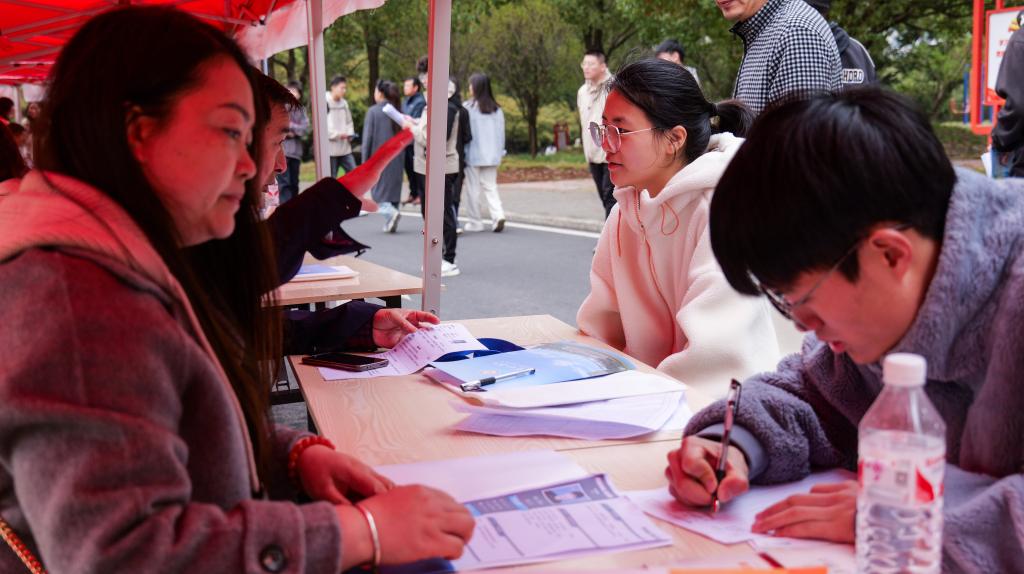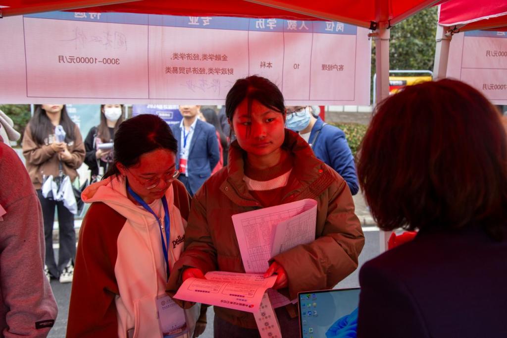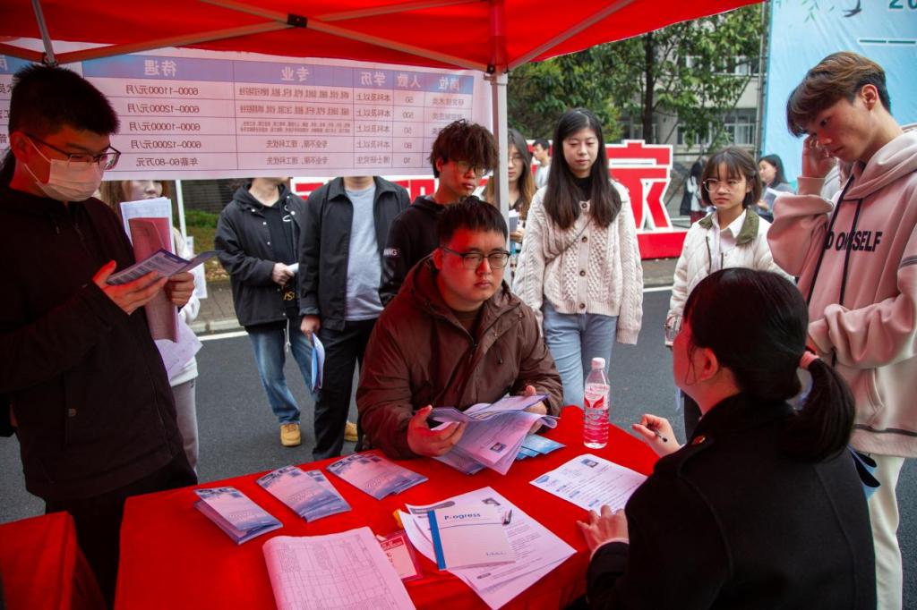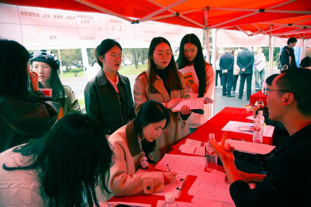 招聘会现场人头攒动,气氛热烈。不少单位展位前排起长队,同学们认真询问岗位设置、招聘条件、应聘流程、工作内容及薪资待遇等信息,并在现场进行简历投递。