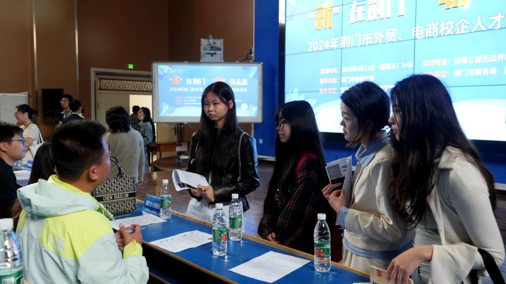 4月12日,2024年荆门市外贸及电商校企人才对接活动在海燕策略社区论坛钟楼三楼无边界教室顺利举行。25家外贸及电商企业和来自外国语学院、经济与管理学院、文学与传媒学院、生物工程学院的200余名学生参加此次活动。
