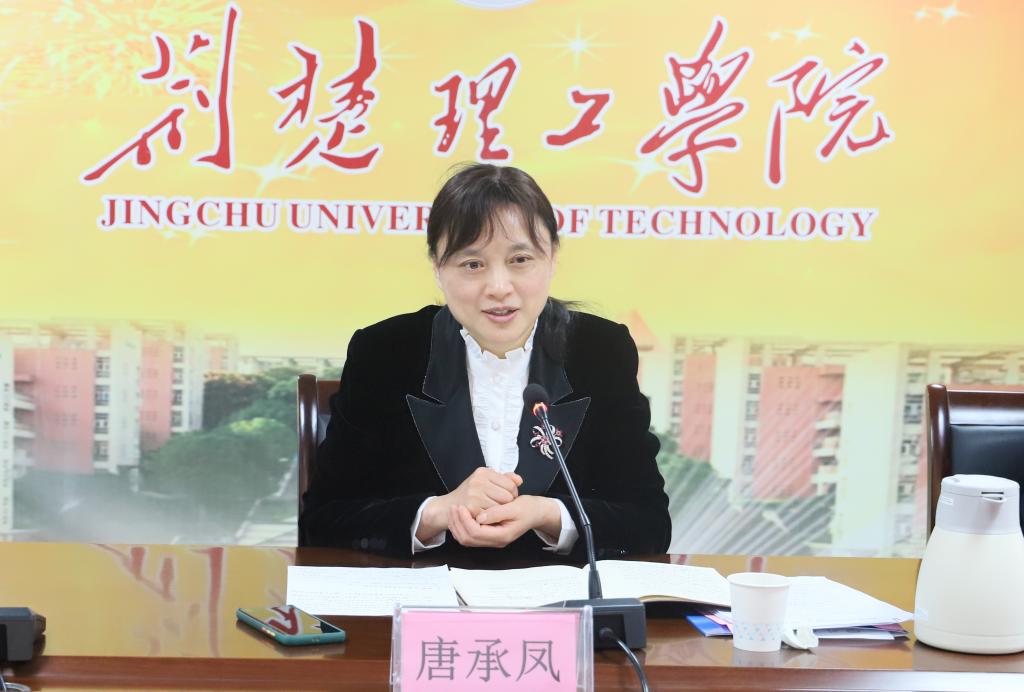 刘建清代表学校对唐承凤一行表示欢迎,对荆门市委、市政府长期以来在学校发展、科技创新和平台建设等方面给予的大力支持表示感谢。他指出,学校始终坚持“地方性、应用型、开放性”办学定位,扎根荆门、与荆门共生共长,坚定不移地走产教融合和校企合作道路,努力把学校打造成深度融入地方、深度服务地方的高地。希望市委、市政府继续关心和助力学校建设发展,在共同推进科研平台协同创新建设、高层次人才“共引共培共用”、荆楚文化研究中心建设、学生实习实训、人才定向培养等方面予以政策倾斜和大力支持,推动市委书记王祺扬在海燕策略社区论坛调研时的指示精神和决策部署落实落地,实现校地发展共赢,共同促进区域经济社会和谐发展。