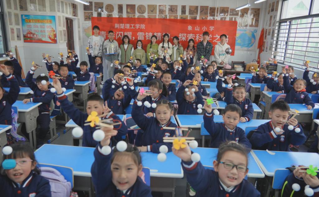“真神奇,我的头发竟然竖起来了!”“哇,落在中间的小球最多,我猜对啦!”这些都是数理学院科普进校园活动中学生们的反应。近日,数理学院科普团以“青春闪耀,雷锋精神——探索科学之路”为主题,走进荆门市象山小学、竹园小学和青山小学,开展系列科普活动。